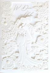 Elegancki karnet na Ślubny w formacie B6 z laserowo wycinanym wzorem. Delikatny, ażurowy motyw z symbolami ślubnymi. Wewnątrz miejsce na życzenia. Idealna pamiątka tego ważnego dnia. przeczytaj całość