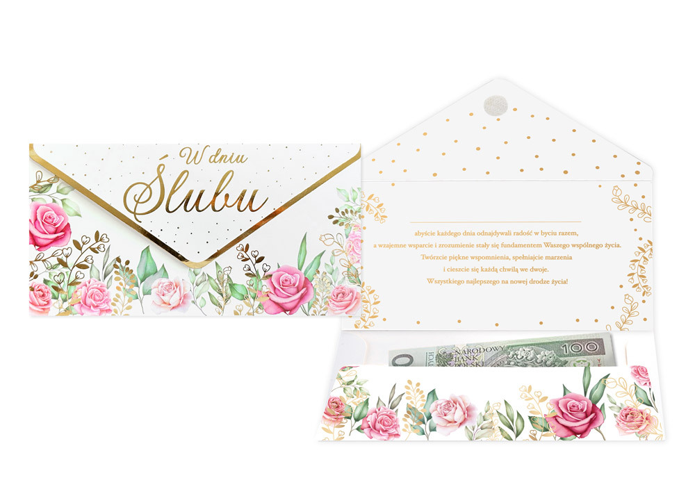 Koperta podarunkowa ślub, róże (20x10,5cm) KOP-027
