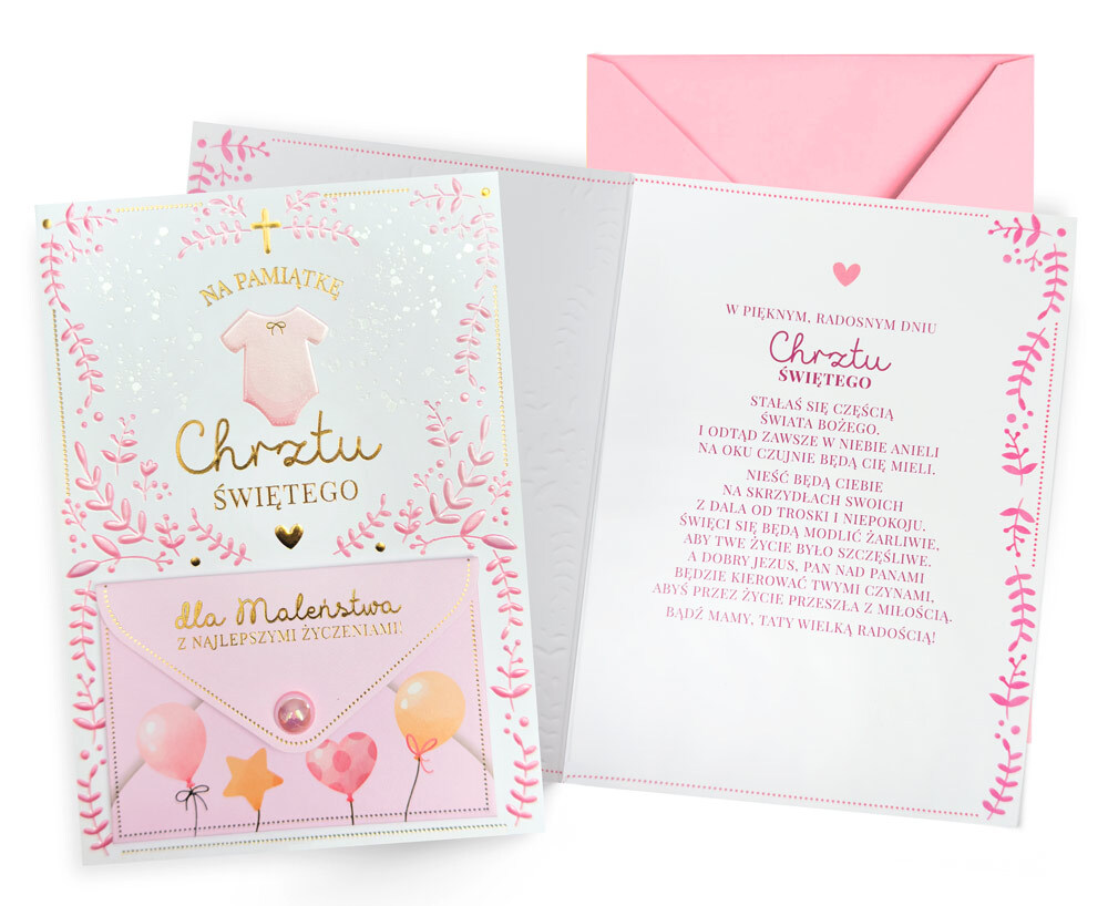 Karnet DK Chrzest z kopertką, różowy DK-1293