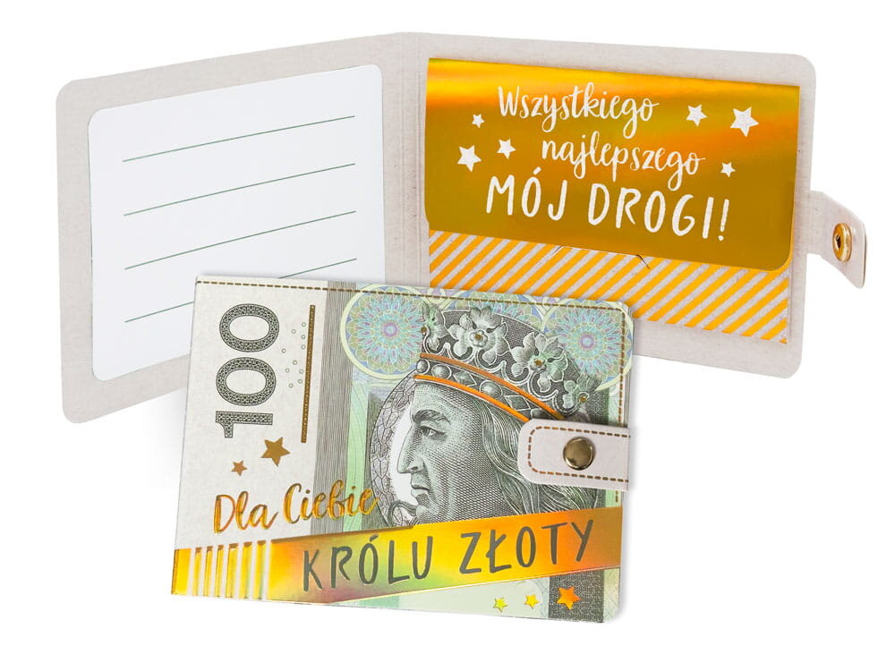 Portfelik tekturowy z kopertką "100 zł dla Ciebie królu złoty" POR-011