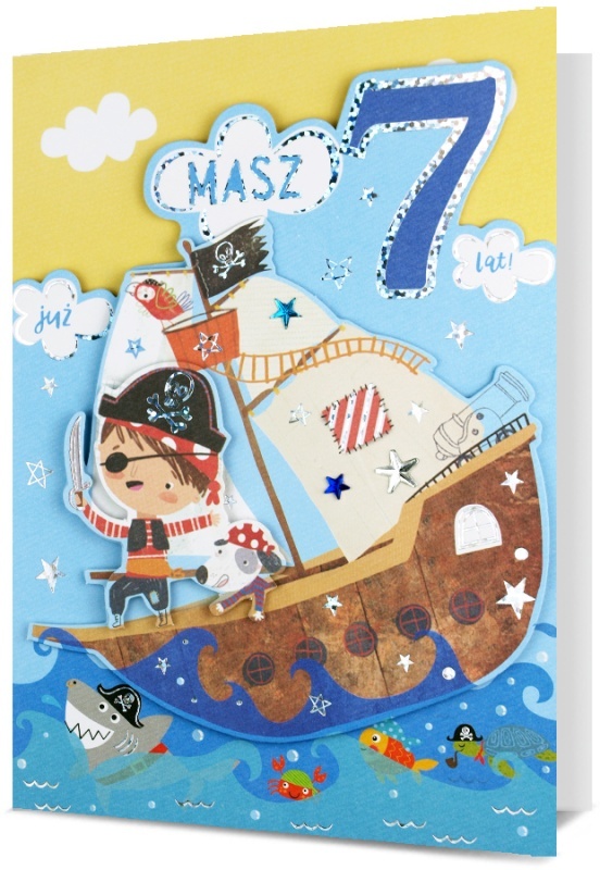 Karnet B6 HM-200 7 Urodziny, chłopiec, pirat HM-200-2855