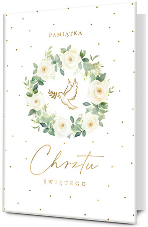 Książeczka Chrzest biała, wianek i gołąb