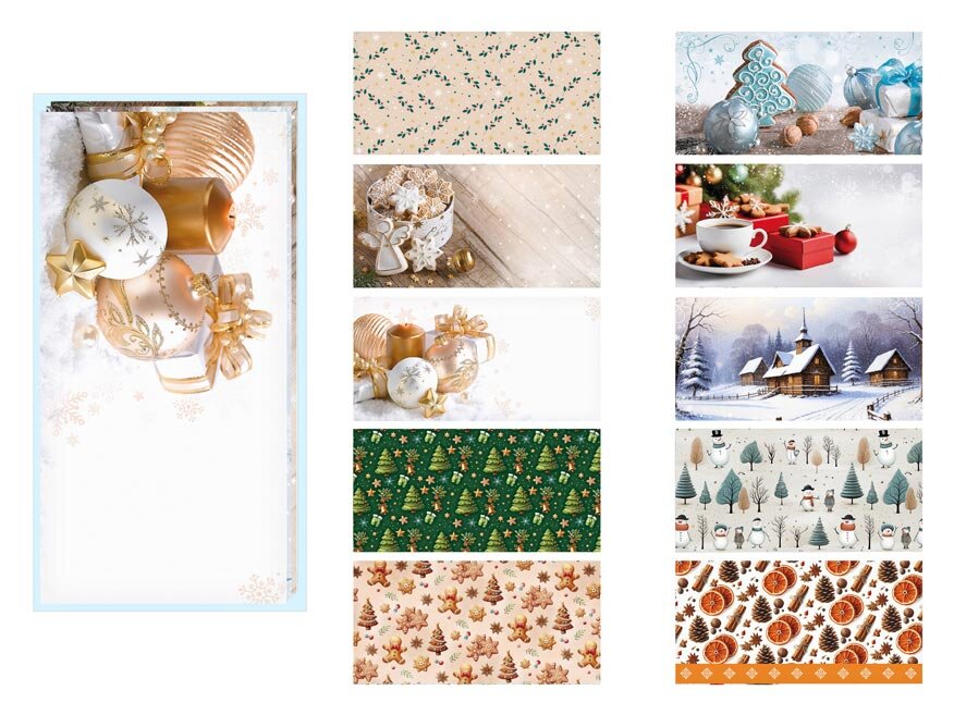 Koperty bożonarodzeniowe z nadrukiem, format DL. Mix wzorów. Opakowanie zawiera 30 szt. przeczytaj całość