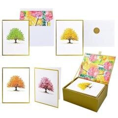 Kolekcja eleganckich karnetów premium marki Peter Pauper Press Akwarelowe Drzewa (Watercolor Trees).W zestawie znajduje się 20 wytłaczanych kartek z akwarelowym drzewem, po 5 sztuk z 4 dostępnych wzorów. Każda kartka posiada zdobienia ze złotej folii i kopertę z akwarelowym akcentem we wnętrzu....