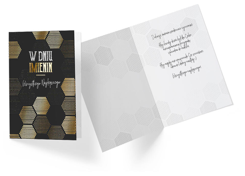 Karnet Imieniny - czarno złoty przeczytaj całość