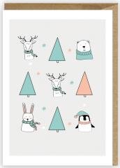 Kartka Boże Narodzenie Zimowe zwierzaki, eko K067