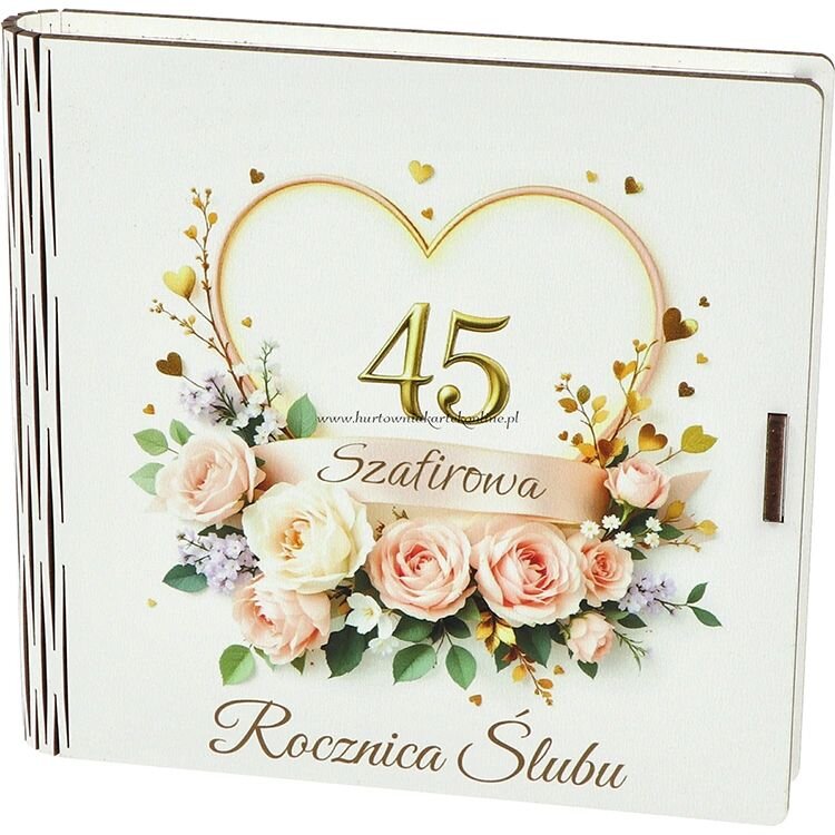 Pudełko drewniane z książeczką 45 rocznica ślubu (15x15x2cm)