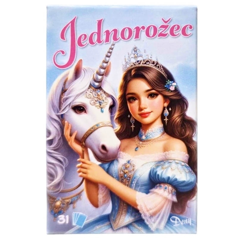 Karty Czarny Piotruś Jednorożec. Kto zostanie z Czarnym Piotrusiem? Wybieraj uważnie, którą kartę wyciągniesz od przeciwnika - może wśród nich ukrywać się Czarny Piotruś! Wygrywa ten, kto pierwszy pozbędzie się wszystkich kart. To najpopularniejsza dziecięca gra karciana. W opakowaniu znajduje się 32 karty. W zestawie znajduje się również instrukcja SK, CZ.