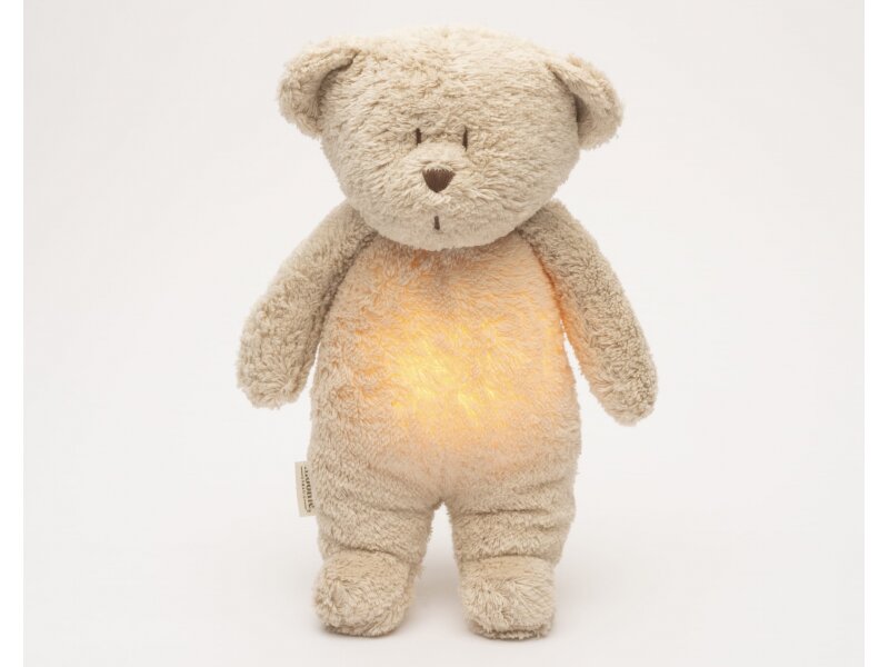 Moonie usínáček v podobě roztomilého medvídka s nočním světlem a relaxačními zvuky pomáhá miminku uklidnit se a snáze usnout. Uklidňující zvuky připomínají dítěti prostředí v děloze maminky před jeho narozením. Usínáček nabízí pět přírodních relaxačních zvuků (tlukot srdce, vítr, lesní potok,...