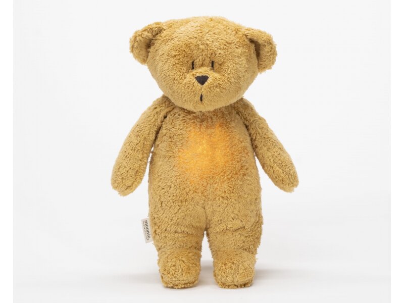 Moonie usínáček v podobě roztomilého medvídka s nočním světlem a relaxačními zvuky pomáhá miminku uklidnit se a snáze usnout. Uklidňující zvuky připomínají dítěti prostředí v děloze maminky před jeho narozením. Usínáček nabízí pět přírodních relaxačních zvuků (tlukot srdce, vítr, lesní potok,...