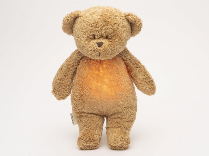 Moonie usínáček v podobě roztomilého medvídka s nočním světlem a relaxačními zvuky pomáhá miminku uklidnit se a snáze usnout. Uklidňující zvuky připomínají dítěti prostředí v děloze maminky před jeho narozením. Usínáček nabízí pět přírodních relaxačních zvuků (tlukot srdce, vítr, lesní potok,...
