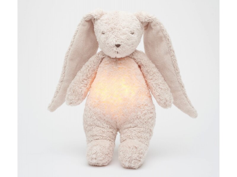 Brzuszek zajączka świeci i pełni funkcję lampki nocnej z wyborem siedmiu kolorów światła. Delikatne światło pomaga dziecku czuć się bezpiecznie w łóżeczku. Światło można włączyć także bez dźwięków. Przy włączonej funkcji Shake światło uruchamia się przez potrząśnięcie zabawką. Zajączek podczas świecenia się nie nagrzewa i jest w pełni bezpieczny dla dziecka.