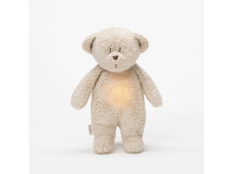 Moonie usínáček v podobě roztomilého medvídka s nočním světlem a relaxačními zvuky pomáhá miminku uklidnit se a snáze usnout. Uklidňující zvuky připomínají dítěti prostředí v děloze maminky před jeho narozením. Usínáček nabízí pět přírodních relaxačních zvuků (lůno matky, vítr, lesní potok,...