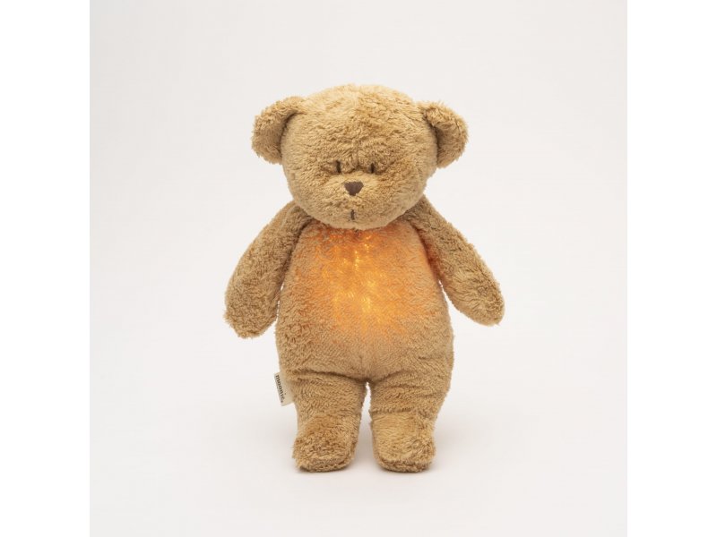 Moonie usínáček v podobě roztomilého medvídka s nočním světlem a relaxačními zvuky pomáhá miminku uklidnit se a snáze usnout. Uklidňující zvuky připomínají dítěti prostředí v děloze maminky před jeho narozením. Usínáček nabízí pět přírodních relaxačních zvuků (lůno matky, vítr, lesní potok,...
