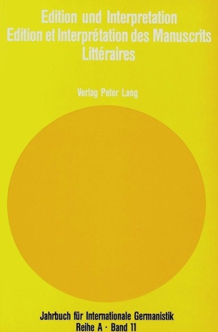 Edition und Interpretation. Edition Et Interpretation Des Manuscrits Litteraires: Akten des mit Unterstützung der Deutschen Fors (niemiecki)
