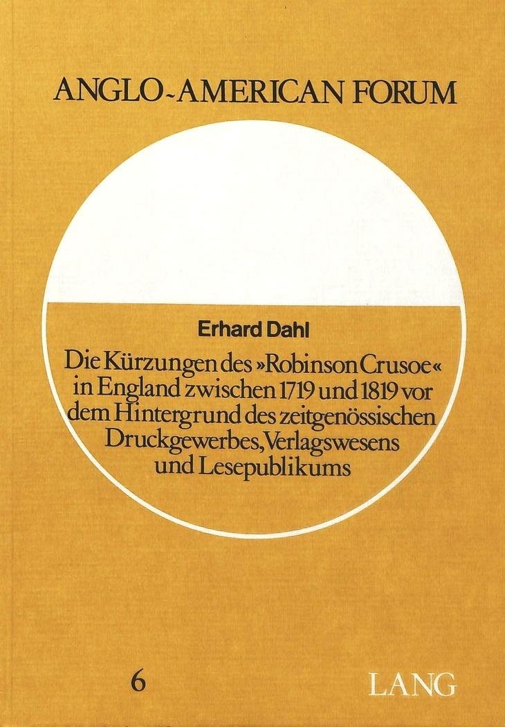 Die Kürzungen des «Robinson Crusoe» in England zwischen 1719 und 1819 vor dem Hintergrund des zeitgenössischen Druckgewerbes, Ve (niemiecki)
