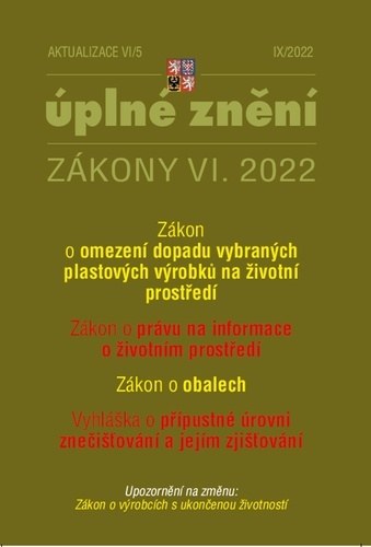 Aktualizace VI/5 2022 Zákon o obalech - Zákon o omezení dopadu vybraných plastových výrobků na životní prostředí (czeski)
