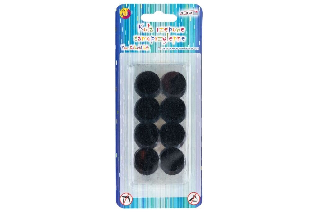 Suché zipy - kolečka o průměru 2 cm černé, samolepící. V balení 24 ks suchých zipů. przeczytaj całość