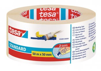 Papierowa taśma maskująca tesa® Masking Standard to wielofunkcyjna taśma, która powinna być częścią wyposażenia przy malowaniu lub renowacji domu czy mieszkania. Główne cechy • Dobra przyczepność do większości powierzchni • Możliwość usunięcia do 4 dni bez pozostawiania śladów kleju • Nie zawiera rozpuszczalników Opis produktu Papierowa taśma maskująca tesa® Standard to wielofunkcyjna taśma do zabezpieczania, która nie powinna zabraknąć przy malowaniu czy remontach domu. Wykonana jest z papieru dla łatwej utylizacji i jest dostępna w trzech szerokościach. Każda z nich nadaje się do innej sytuacji. Mimo dobrej przyczepności kleju po użyciu można ją łatwo usunąć bez pozostawiania śladów kleju. Czas przyklejenia w takim przypadku wynosi 4 dni i gwarantujemy brak pozostałości.