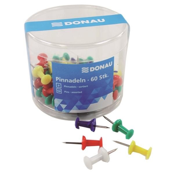 Nástěnkové připínáčky Donau, 60 ks, mix barev
