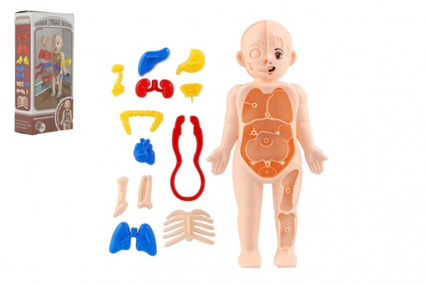 Lidské tělo stavebnice hlavolam plast 19cm s doplňky v krabičce 9x19x4,5cm