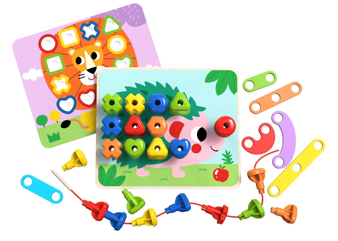 Súčasťou sady je aj povrázok s drevenou ihlou pre nácvik navliekania kolíčkov. Táto sada obsahuje všetko, čo potrebujete pre zábavné vzdelávanie založené na hre. Vďaka svojej variabilite sa s ňou deti budú rady hrať veľmi často. Súprava je vyrobená z dreva s povrchovou úpravou najvyššej kvality.