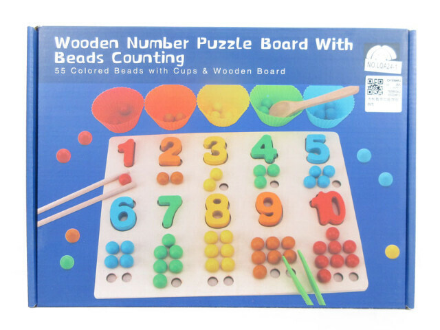 Układanka drewniana (Puzzle wielofunkcyjne), z którą dziecko poznaje liczby. Idealna układanka do poznania pierwszych dziesięciu liczb, ponieważ posiada kulki, które trzeba segregować po liczbie i kolorze. W zestawie dołączono foremki na kulki, łyżkę, patyczki i szczypce. Puzzle rozwijają...