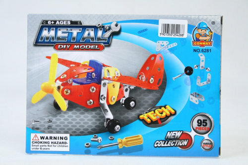 Klocki konstrukcyjne, metalowe. W zestawie części klocków ze śrubami i śrubokretem do skręcania. przeczytaj całość