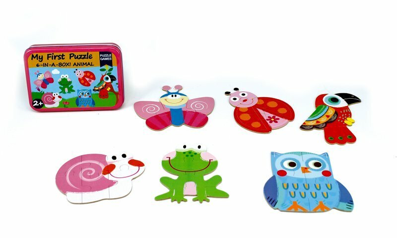 Puzzle drewniane przedstawiające zwierzątka. W zestawie jest 6 układanek (motyl, żaba, biedronka, papuga, ślimak, sowa). Znajdują się w metalowym pudełku. Dzieci w małym wieku zaczynają tworzyć koncepcje wielkości, koloru i przestrzeni obiektów. Prosty trening łamigłówek z tą układanką może...