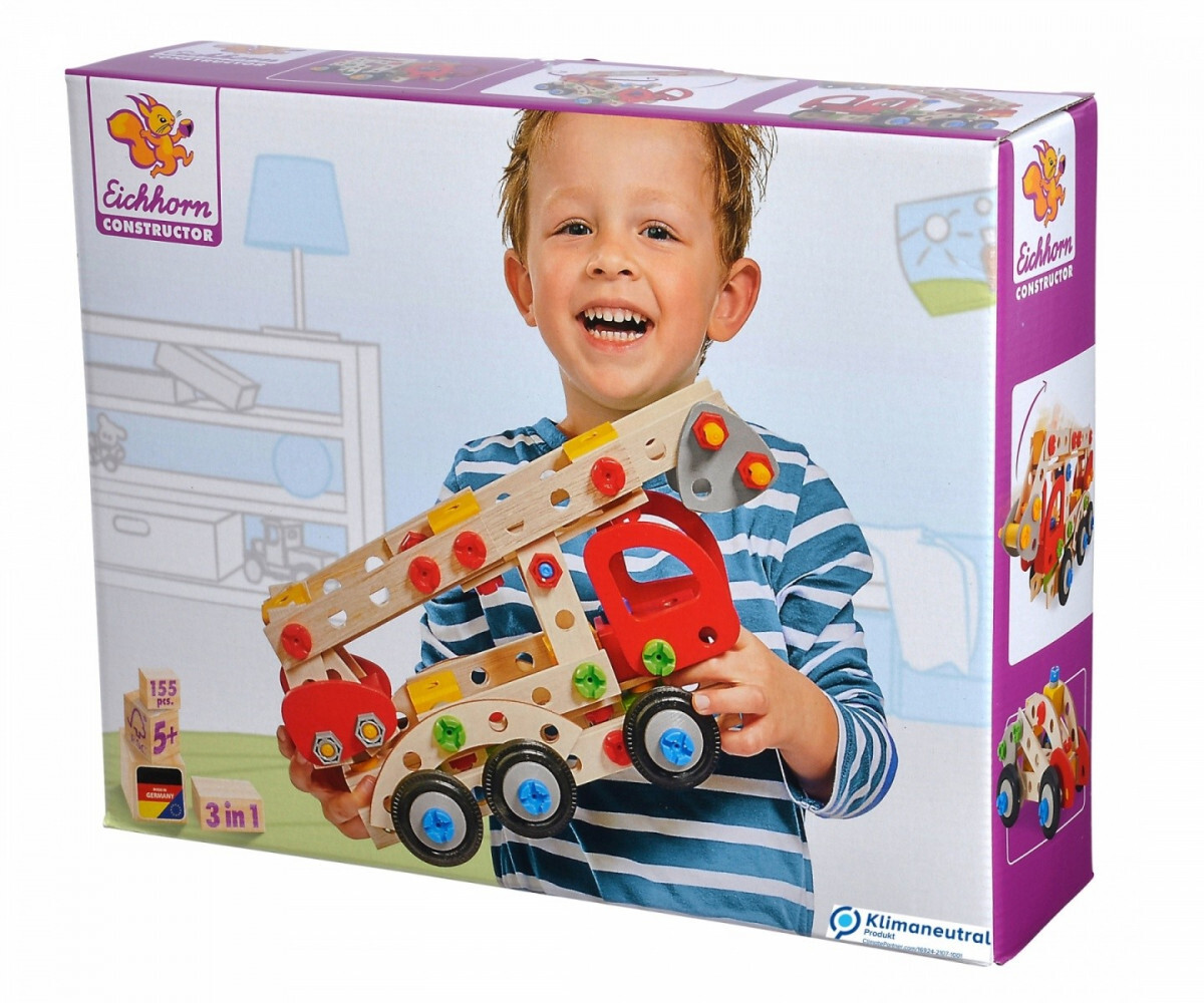 3 możliwości złożenia: wóz strażacki, ambulans, pojazd policyjny. Zabawka wykonana z drewna bukowego i plastiku. Dla dzieci w wieku: 5+Wymiary opakowania: 8 x 32,5 x 25 cm. przeczytaj całość