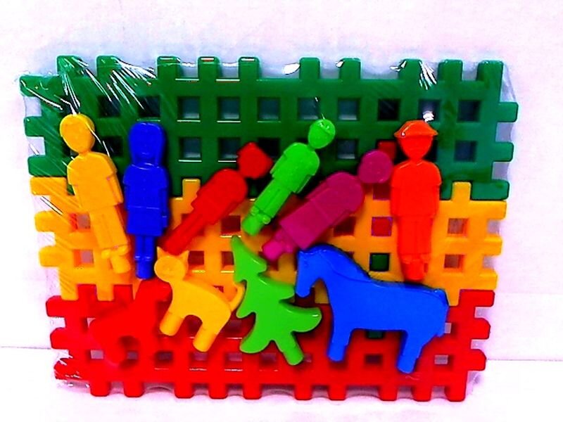 Zestaw klocków składa się z 17 elementów: mamy, taty, czwórki dzieci, pieska, kotka, konika oraz drzewka. Całość można ustawiać na trzech dużych klockach konstrukcyjnych. Kształt i kolorystyka produktu sprawiają, że dziecko poprzez zabawę ćwiczy zdolności manualne, pamięć oraz wyobraźnię. Klocki wykonane zostały z miękkiego tworzywa, dzięki czemu są bezpieczne również dla najmłodszych dzieci.