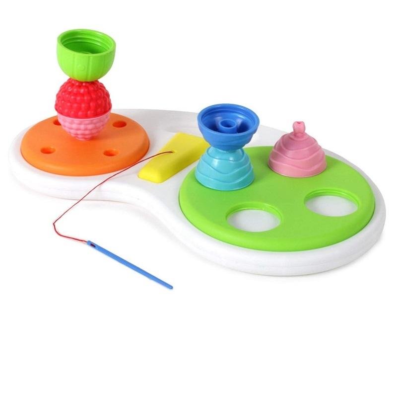 Stacja aktywności to zabawka edukacyjna, która świetnie rozwija zręczność, kreatywność i wyobraźnię. Składa się z białej platformy z uchwytem do przenoszenia. Na niej zamontowano dwie kolorowe, obrotowe podstawki z otworami do wkręcania kulko-klocków. Na środku przymocowano bezpieczny sznureczek...
