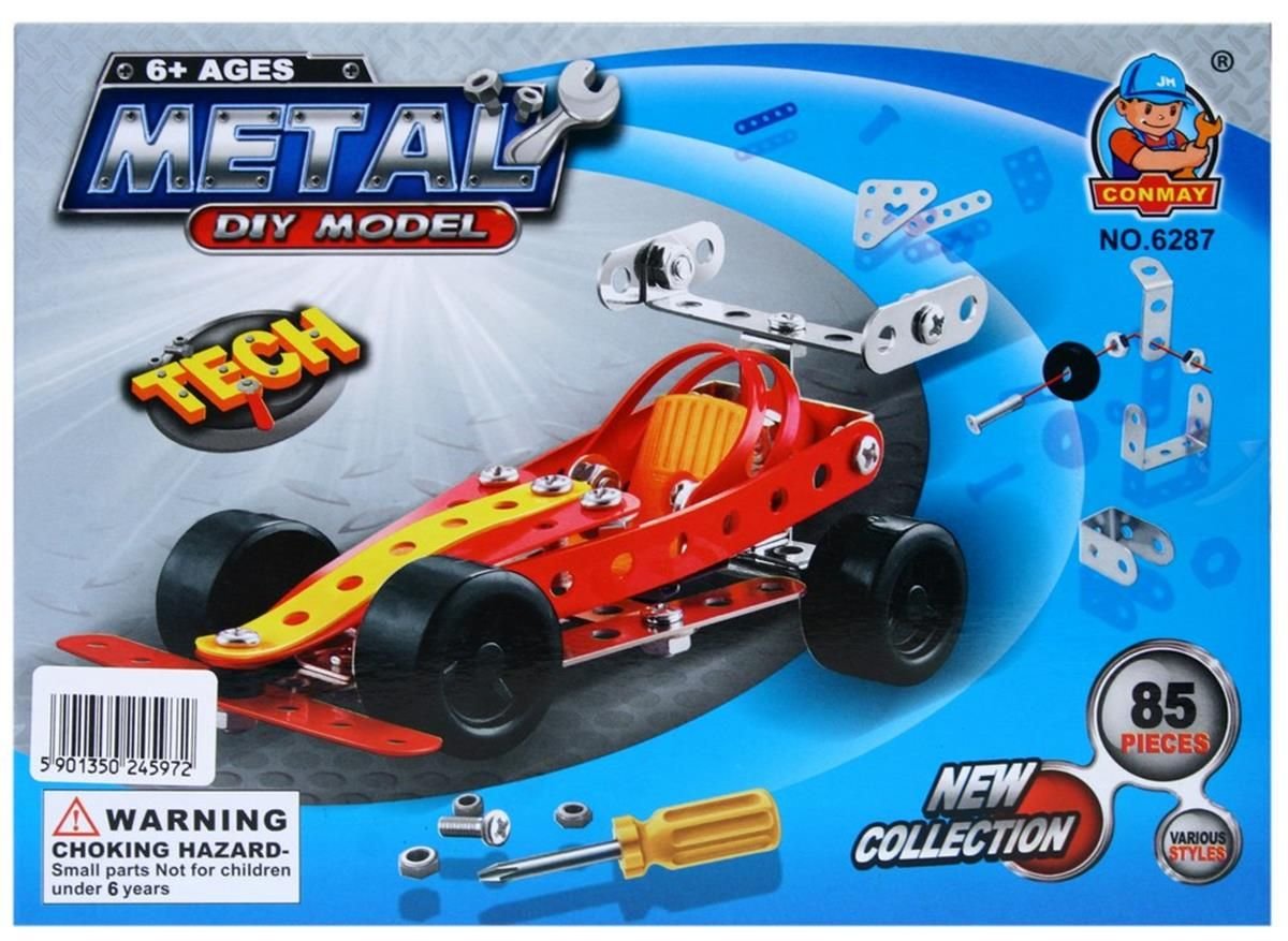 Stavební bloky, kovové. Sada obsahuje části bloků se šrouby a šroubovákem pro zkroucení. przeczytaj całość