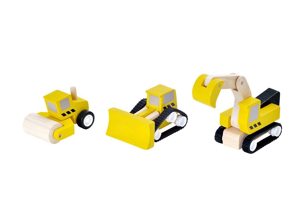 Zestaw 3 samochodów budowlanych do budowy drogi. Autka z oferty Plan Toys są kompatybilne z torem samochodowym, dzięki czemu dzieci mogą wymyślać kolejne historie, rozwijać wyobraźnię i umiejętności społeczne. Wykonane z ekologicznego drewna kauczukowego i barwione nietoksycznymi farbami na bazie wody. Wymiary: 3,8 cm x 14,2 cm x 4,8 cm Nadaje się dla dzieci od 3 lat. PLAN TOYS Plan Toys to firma z 40-letnim doświadczeniem w produkcji wysokiej jakości ekologicznych zabawek. Firma powstała w 1981 roku na południu Tajlandii i działa tam do dziś. W produkcji wykorzystuje drewno z drzew kauczukowych, które nie produkują już lateksu. Firma skupuje to drewno od rolników, dla których nie ma już wartości, jednocześnie dbając o ponowne nasadzenia drzew. Dzięki wykorzystaniu tego drewna produkcja jest trwała, ekologiczna i oparta na wysokiej jakości materiale. Proces produkcji został zaprojektowany tak, aby przy użyciu energii słonecznej i biomasy maksymalnie oszczędzać energię i eliminować powstawanie odpadów. PlanToys stosuje w produkcji klej bez formaldehydu oraz farby na bazie wody, które są bezpieczne, nie zawierają ołowiu ani innych ciężkich metali. Do opakowań i materiałów drukowanych używa się papieru z recyklingu. Zabawki są wytwarzane z myślą o ochronie środowiska i odpowiedzialności społecznej oraz spełniają normy ISO 9001 (wysoka jakość produktów) i 14001 (zarządzanie środowiskowe). Firma uzyskała akredytację w zakresie odpowiedzialności społecznej (OHSAS 18001), co świadczy o doskonałych relacjach z pracownikami oraz tworzeniu bezpiecznego i zdrowego środowiska pracy. Firma zatrudnia między innymi osoby z niepełnosprawnościami, regularnie sponsoruje wiele działań dla dzieci, takich jak kluby dla dzieci, place zabaw, biblioteki i świetlice, a nawet współpracuje z matkami dzieci z różnymi niepełnosprawnościami, tworząc z nimi zabawki, które mogą pomóc tym dzieciom. Zabawki PlanToys wspierają zabawę, kreatywne myślenie i uczą dzieci o otaczającym je świecie. O ich sukcesie świadczy także dziesiątki nagród z całego świata. Zalety zabawek PlanToys: