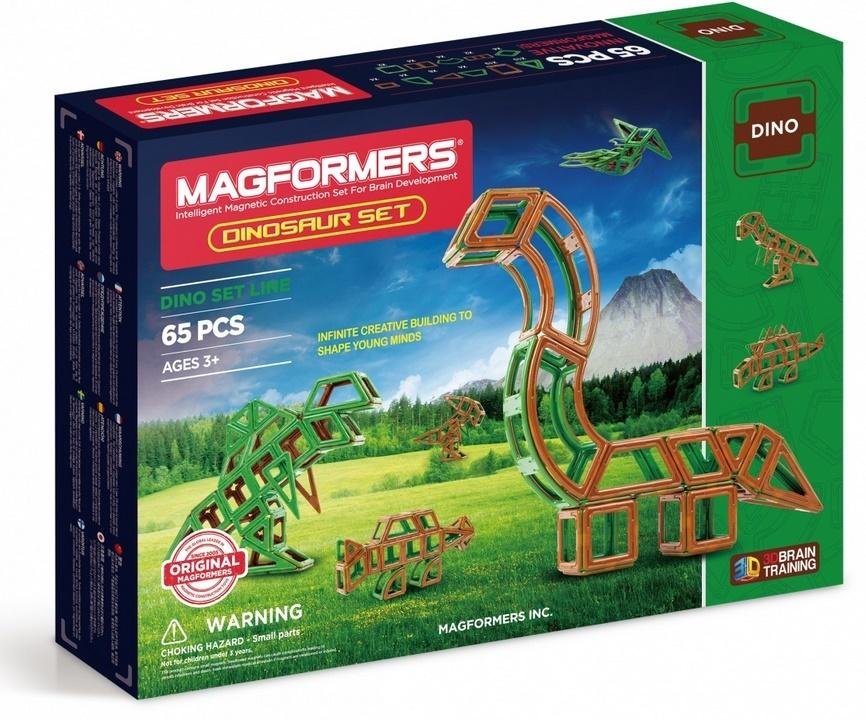 MAGFORMERS DINO DINOSAUR 65 to klocki z wbudowanymi silnymi magnesami neodymowymi, które zawsze się przyciągają. Wystarczy zbliżyć do siebie ściankami dwa klocki, a one natychmiast ze sobą się połączą. Za pomocą klocków wzorowanych na kształt figur geometrycznych można zbudować wspaniałe...