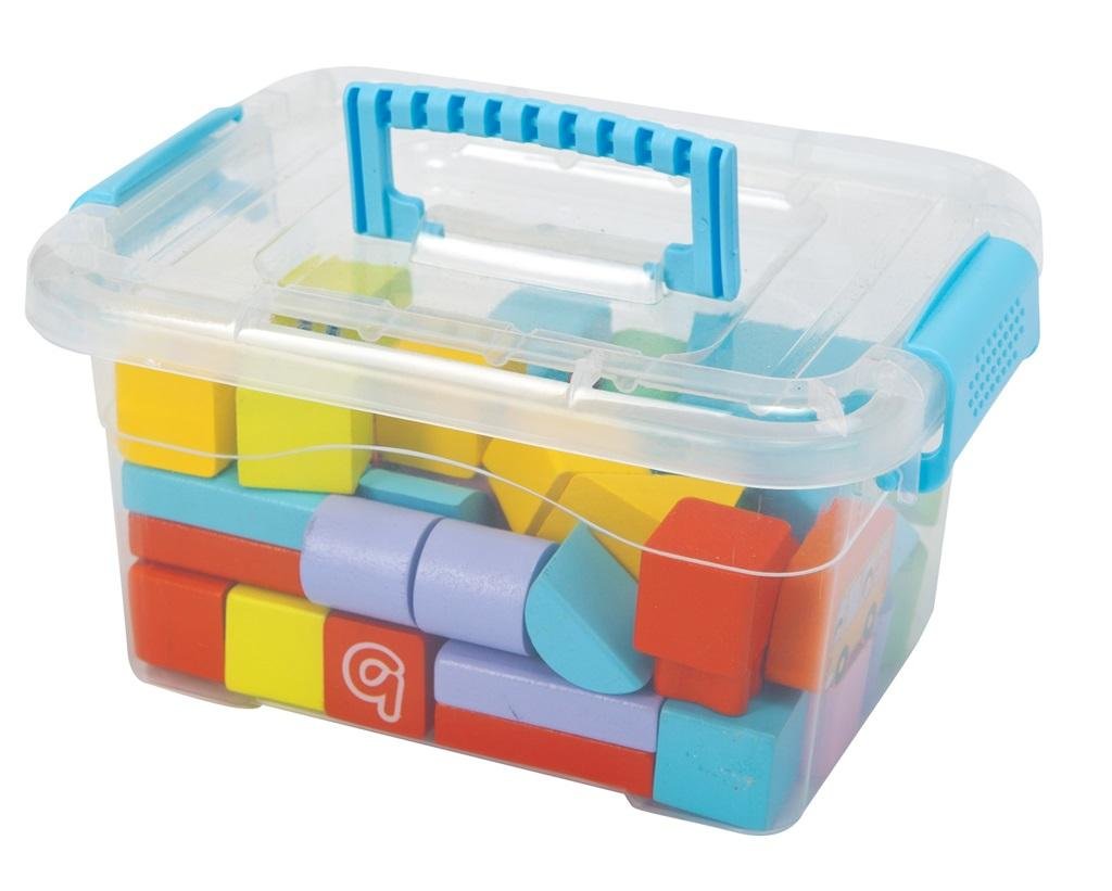 Zestaw 76 sztuk kolorowych klocków zapakowanych w plastikowy pojemnik z rączką. Dzięki różnorodnym kształtom z klocków można zbudować niezliczona ilość konstrukcji. Do zestawu dołączona została instrukcja z wzorami. przeczytaj całość