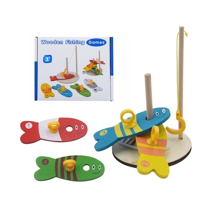 Dětský dřevěný rybolov. Balení obsahuje 5 barevných rybiček, udici a stojan. Nevhodné pro děti do 3 let. Délka rybičky je 10cm. przeczytaj całość