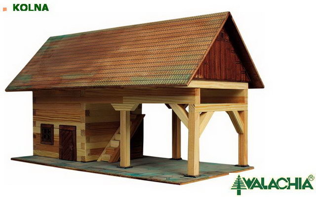 Dřevěná slepovací stavebnice Walachia - Kolna. Slepovací stavebnice Walachia jsou dřevěné modely domečků a staveb z Valašského kraje v měřítku 1:32. Základem jsou dřevěné hranolky 9x9 mm a k tomu jsou v sadě vždy všechny papírové doplňky - okna, dveře, střešní části atd. Pro lepení se používá...