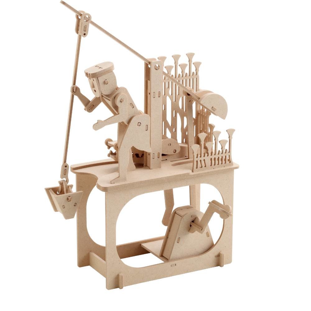 Dřevěná mechanická stavebnice při jejíž kompletaci se můžte seznámit se základními principy mechaniky.