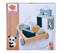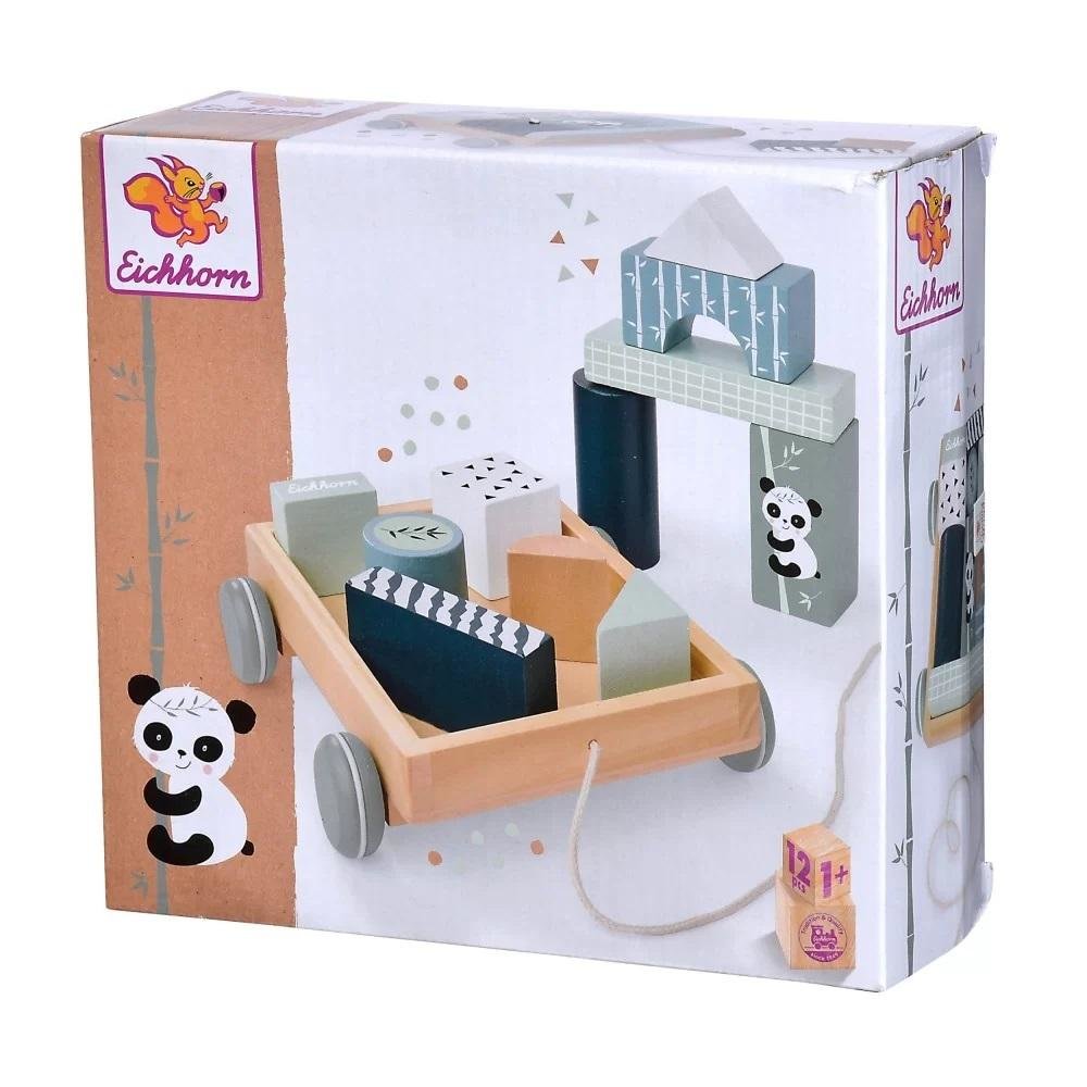 Drewniana taczka, posiada ruchome koła, do zestawu dołączone 11 drewnianych klocków, które wyróżnia estetyczna, błękitno-szara kolorystyka, wykonane z drewna brzozowego, Wymiary taczki: 18 x 17,5 cm. przeczytaj całość