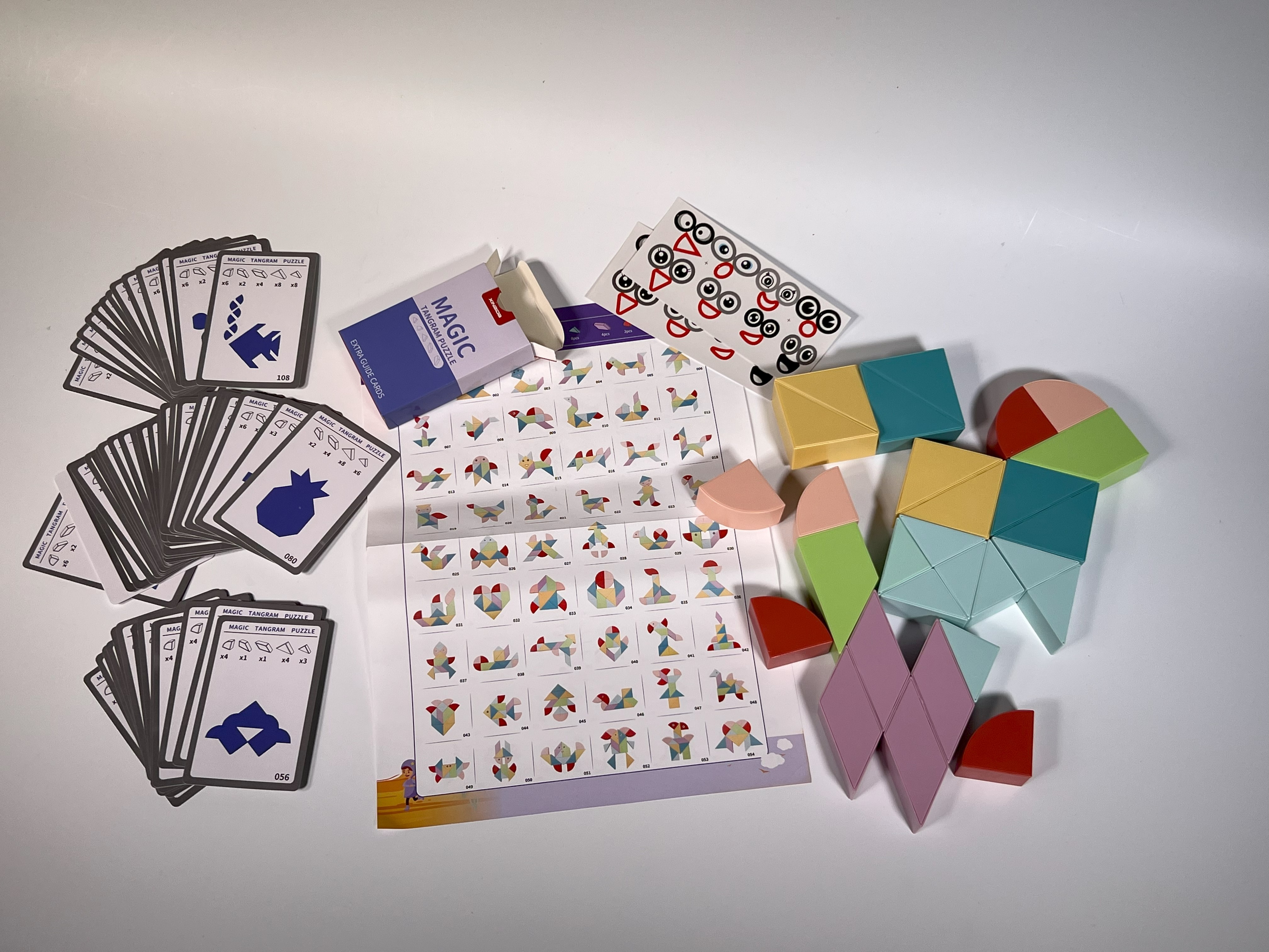 Tangram je magnetická stavebnice plná barevných dílů různých tvarů a kartiček/předloh k úkolům. Děti skládají podle kartiček zvířátka, autíčka, domečky, letadla. Během hry procvičují logické uvažování, prostorovou orientaci, koordinaci oko-ruka, seznamují se se základními geometrickými tvary a...
