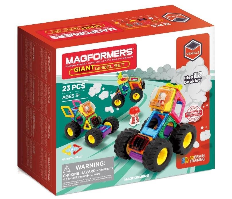 MAGFORMERS GIANT WHEEL SET to klocki z wbudowanymi silnymi magnesami neodymowymi, które zawsze się przyciągają. Wystarczy zbliżyć do siebie ściankami dwa klocki, a one natychmiast ze sobą się połączą. Za pomocą klocków wzorowanych na kształt figur geometrycznych można zbudować wspaniałe...