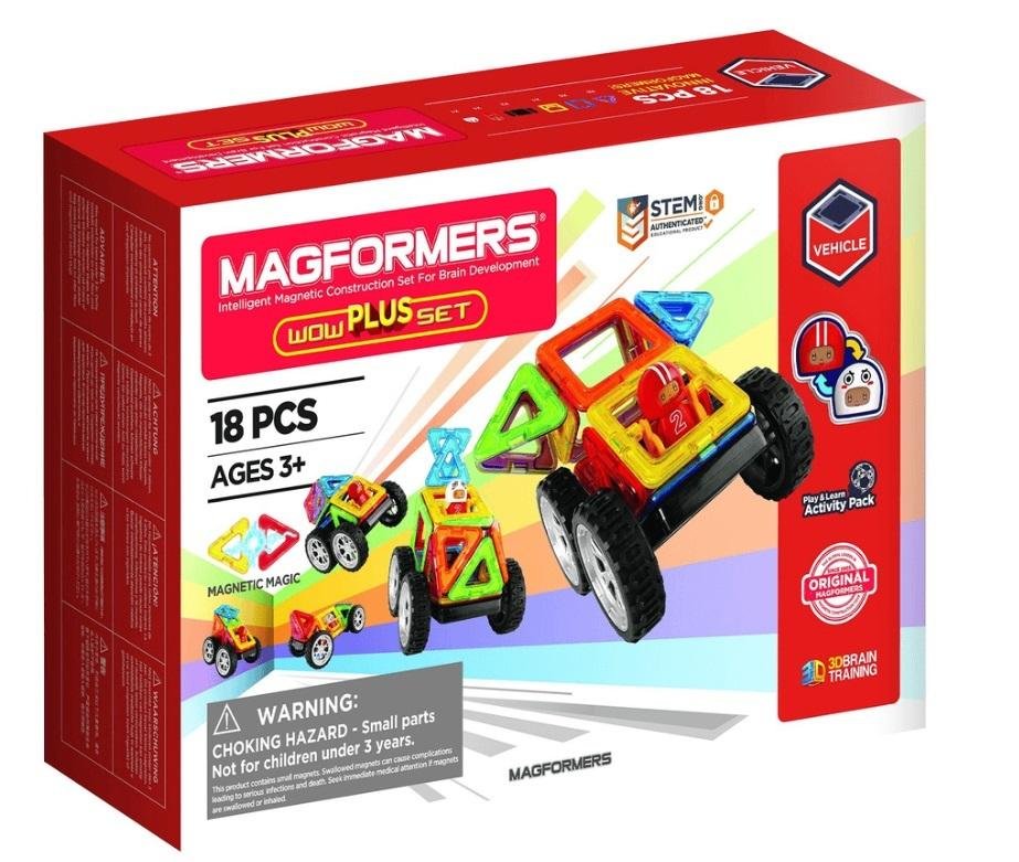 MAGFORMERS WOW SET PLUS to klocki z wbudowanymi silnymi magnesami neodymowymi, które zawsze się przyciągają. Wystarczy zbliżyć do siebie ściankami dwa klocki, a one natychmiast ze sobą się połączą. Za pomocą klocków wzorowanych na kształt figur geometrycznych można zbudować wspaniałe...
