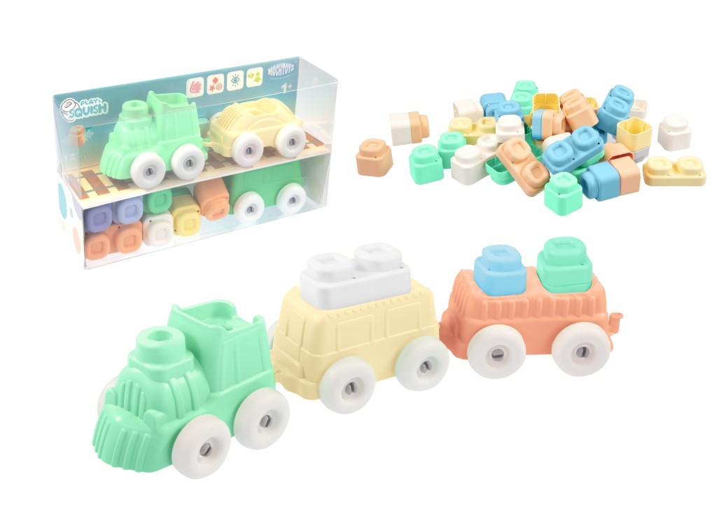 Stavebnice Vláček + kostky silikonové Play&Squish 12 ks