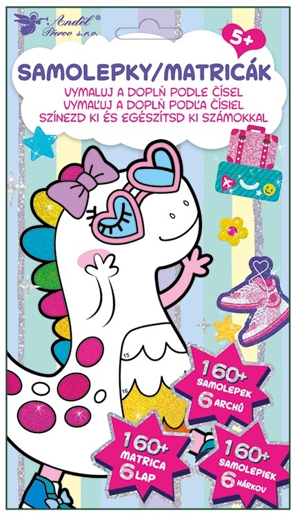 Sada na malování a lepení podle čísel 6 archů, 160 samolepek 14,5 x 25 cm