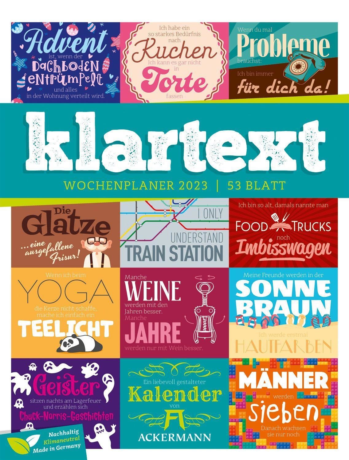 Klartext Sprüchekalender - Wochenplaner Kalender 2023 (niemiecki)