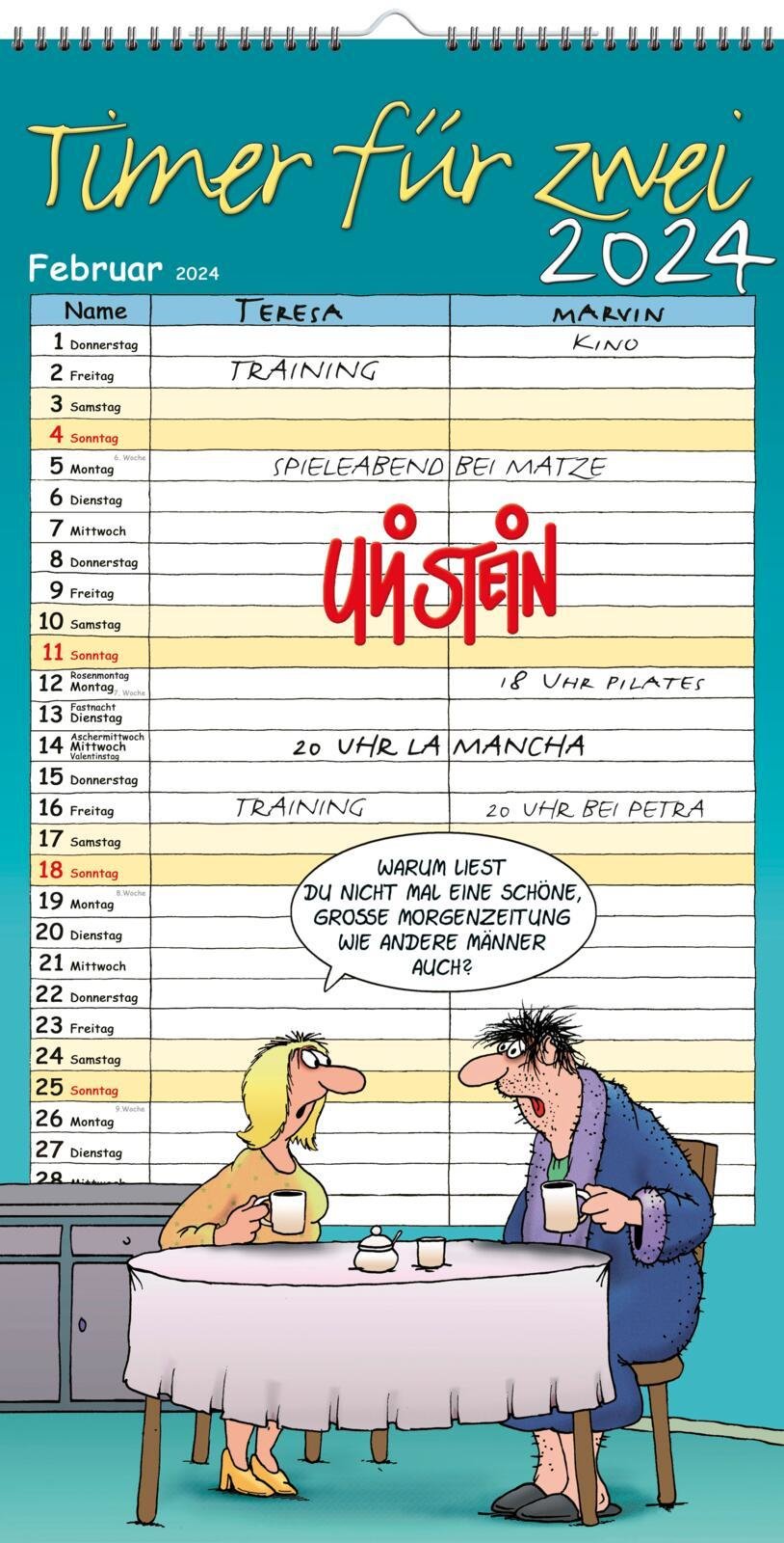 Uli Stein Timer für zwei 2024: Monatskalender für die Wand (niemiecki)