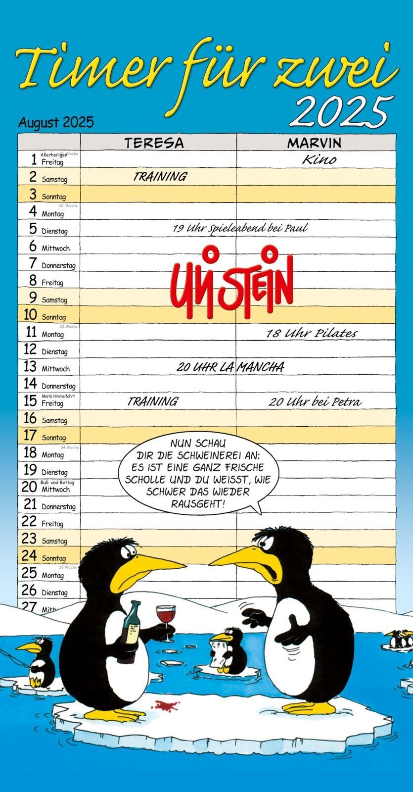Uli Stein Timer für zwei 2025: Monatskalender für die Wand (niemiecki)