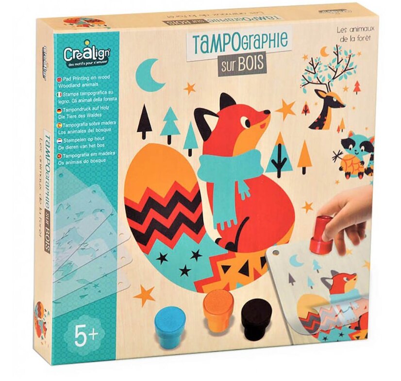 Maľovanie na drevo Lesné zvieratká 5+Vytvor si jedinečnú drevenú dekoráciu!Originálna kreatívna sada od Crea Lign Maľovanie na drevo zoznámi deti s tzv. tampónovou tlačou (tampoprint). Pomocou 4 pečiatkovacích farieb a 3 hárkov s predlohami si deti potlačia 3 drevené tabuľky krásnymi obrázkami....