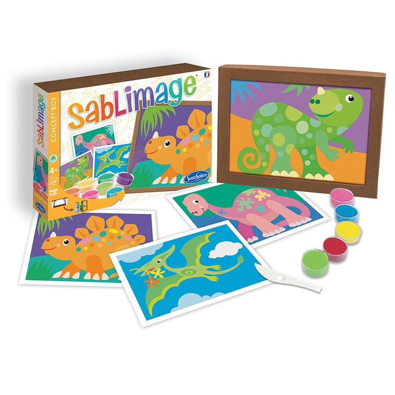Bavte se pomocí jemného písku a kreativního tvoření díky sadě Sablimage - Pískové obrázky - Dinosauři, pocházející z dílny francouzské značky Sentosphere.Posypte dinosaury nádherným barevným pískem a proměňte obyčejné ilustrace v zářivá umělecká díla. Tato zábavná umělecká a řemeslná aktivita...